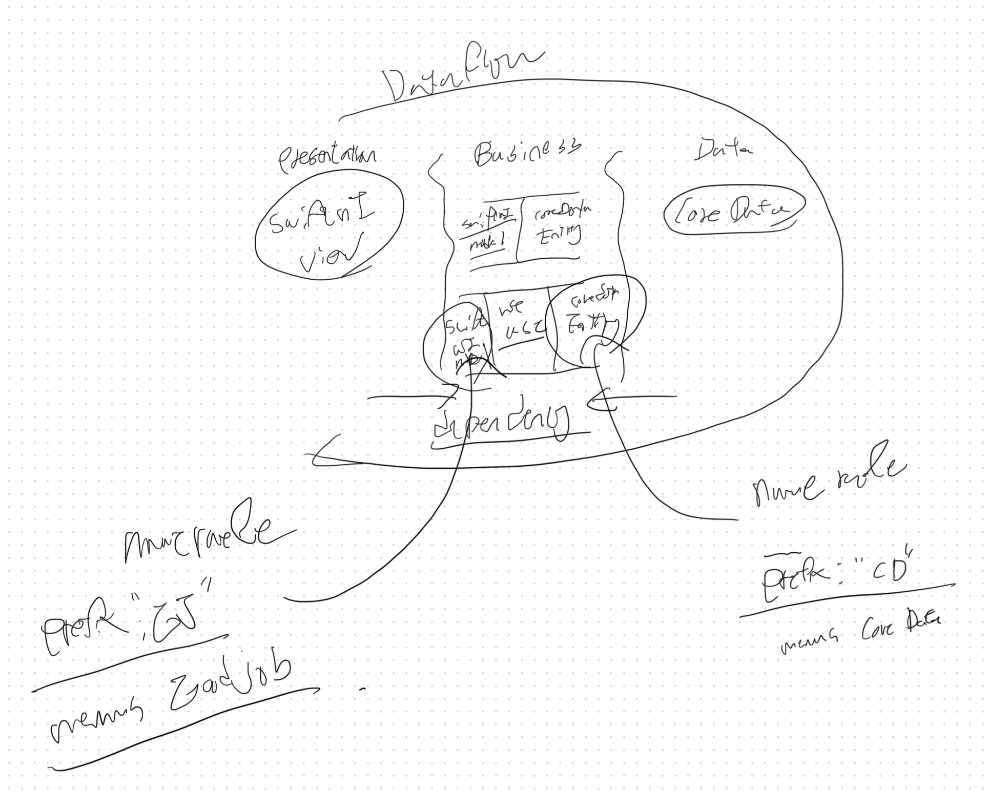 코드를 수정하기가 어려웠어요. 하나의 객체가 갖는 책임이 너무 많아서요. 예를 들어 제가 처음에 작성한 코드는요. 하나의 객체가 코어데이터에 대한 CRUD도 했고요. 코어 데이터의 변화를 감지하여 UI에게 안내하는 일도 했고요. Data Model 계층의 데이터 타입을 Presentaion 계층의 데이터 타입으로 변환도 했어요. 이런 사유로 코드가 수정되어야할 이유가 너무 많았고요. 해당 코드 모듈을 수정하면 여기에 의존하는 다른 코드 모듈이 오류를 내 뿜었어요.