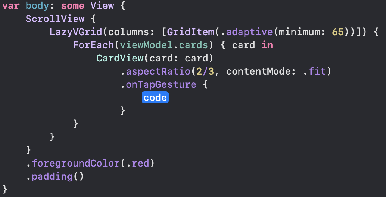 ForEach(viewModel.cards) { card in