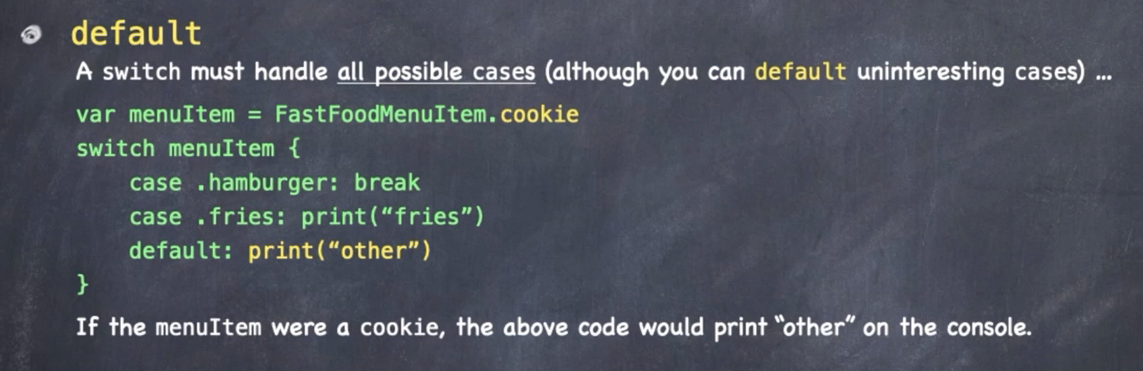 let otherItem: FastFoodMenuItem = .cookie