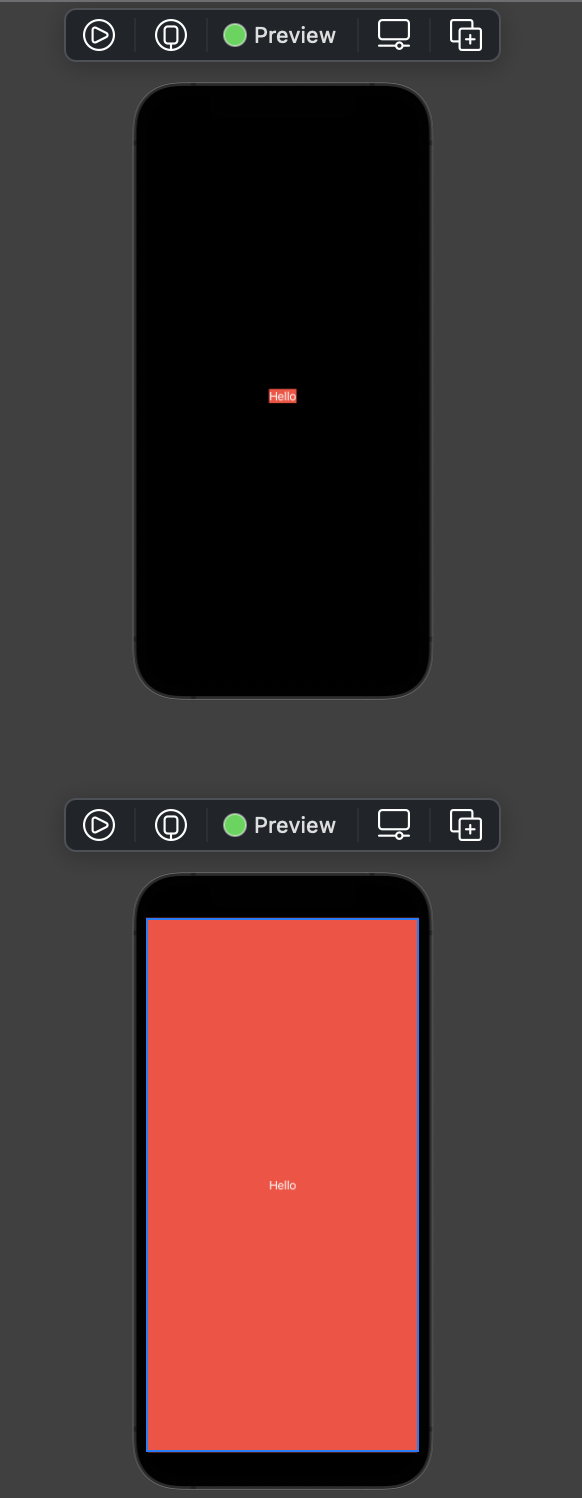 이제 HStack과 VStack의 내부에 있는 모든 view의 크기가 결정되었으니 스택의 크기 또한 이에 맞춰 자체적으로 조정된다. 이때 만약 스택 내부에 있는 모든 View가 Flexible할 경우 stack 또한 flexible 하게 동작한다.