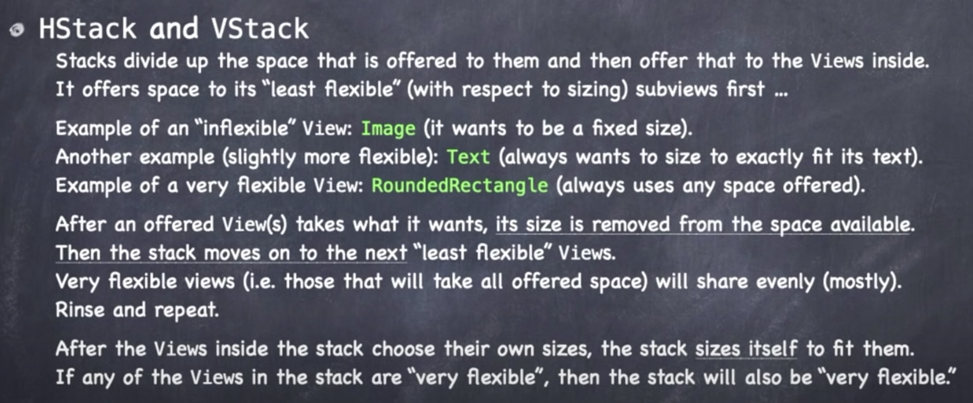 - 가장 flexible한 View의 예시로 RoundedRectangle이 존재한다. 제공된 모든 공간을 최대한 사용해 버린다.