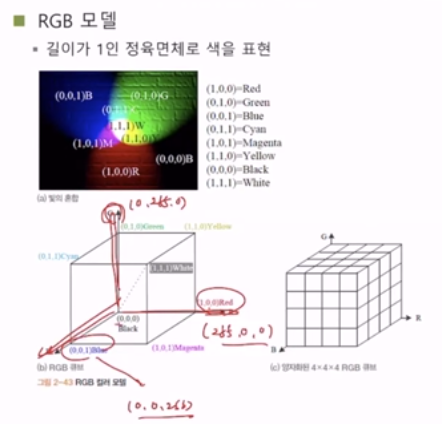 ์ผ๋ฐ์ ์ผ๋ก๋ 1๋ฐ์ดํธ ํฌ๊ธฐ๋ฅผ ๊ฐ๋ R, G, B์ ์ ํ ์กฐํฉ์ ํตํด ๋ชจ๋ ์์์ ํํํ๋ ํธ์ด๋ค.