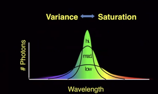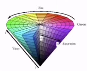 ํ์ ํ๋ ๋ฐฉํฅ์ผ๋ก ๋น์ ํ์ฅ์ด ๋ฐ๋๊ณ ์์ผ๋ฉฐ ์ํ๋ฐฉํฅ์ผ๋ก ์์ง์ด๋ฉด ๋น์ ๋ฐ๊ธฐ(intensity)๊ฐ์ด ๋ฐ๋๋ค. ์์ ๋ฐ์ง๋ฆ์ ๋ฐ๋ผ saturation์ด ๋ฌ๋ผ์ง๋ค. (์ง๋นจ๊ฐ, ์งํ๋, ์ง์ด๋ก)