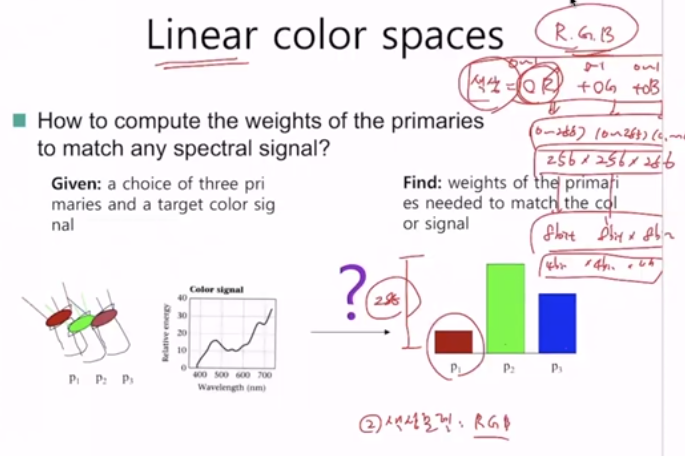 - ์ปฌ๋ฌ๋ ๋ฌผ๋ฆฌ์ ์ธ ๋น(์์ฐ๊ด, ์กฐ๋ช ) ํ๊ฒฝ๊ณผ ์ฐ๋ฆฌ์ ๋น์ฃผ์ผ ์์คํ (๋, ์นด๋ฉ๋ผ)๊ณผ์ ์ํธ์์ฉ์ ๊ฒฐ๊ณผ์ด๋ค.