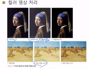 ์๋ ์์์ผ๋ก๋ถํฐ Intensity๋ฅผ ๋ฐ๊ฟ์ผ๋ก์จ ์ฌ์ง์ ๋ถ์๊ธฐ๋ฅผ ๋ฐ๊ฟ ์ ์๋ค. ์ฒซ๋ฒ์งธ ์์์ Brightness ๋ฅผ ๋๋ฒ์งธ ์์์ ๊ฐ๋ง๊ฐ์ ๋ฐ๊พผ ๊ฒ์ด๋ค. ๊ฐ๋ง๊ฐ์ ํ๋๋ผ๊ณ ๋ถ๋ฅด๋ฉฐ ๋น์ ํ์ ์ผ๋ก ๋ฐ๊ธฐ ๊ฐ์ ์กฐ์ ํ ์ ์๋ค.