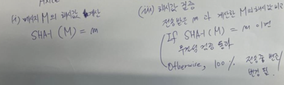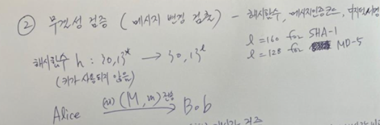 Alice์ Bob์ด ๋ฉ์์ง๋ฅผ ์ฃผ๊ณ ๋ฐ์ ๋ ์ ์ก ๋์ค์ ๋ฉ์์ง๊ฐ ๋ณ๊ฒฝ๋์ง ์์์์ ๋ณด์ฅํ๊ณ ์ถ๋ค๋ฉด ํด์ ํจ์๋ฅผ ์ฌ์ฉํ๋ค.