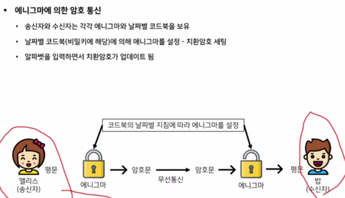- ๋ ์ผ์ ์ธ๋ฅด๋น์ฐ์ค(Arthur Scherbius)๊ฐ 20์ธ๊ธฐ ์ด์ ๋ฐ๋ช ํ ์ํธํ/๋ณตํธํ๋ฅผ ์ํํ๋ ๊ธฐ๊ณ