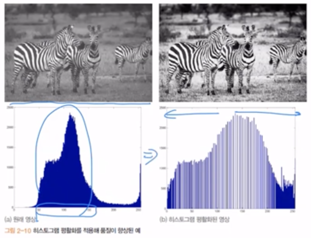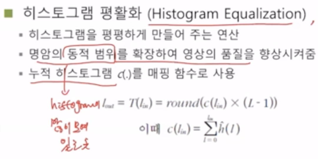 - Histogram Equalization์ ๋ช ์๊ฐ์ด ๋ง์ด ๋ชจ์ฌ์๋ ๋ถ๋ถ์ ์ง์คํ์ฌ ๋น๊ฒจ์ค๋ค.