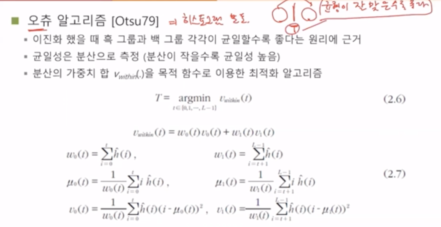 ์ฃผ์ด์ง Gray Image๋ฅผ Binary Imag๋ก ๋ง๋๋ ๊ฒ์ ์ด์งํ ๋ผ๊ณ ๋ถ๋ฅธ๋ค.