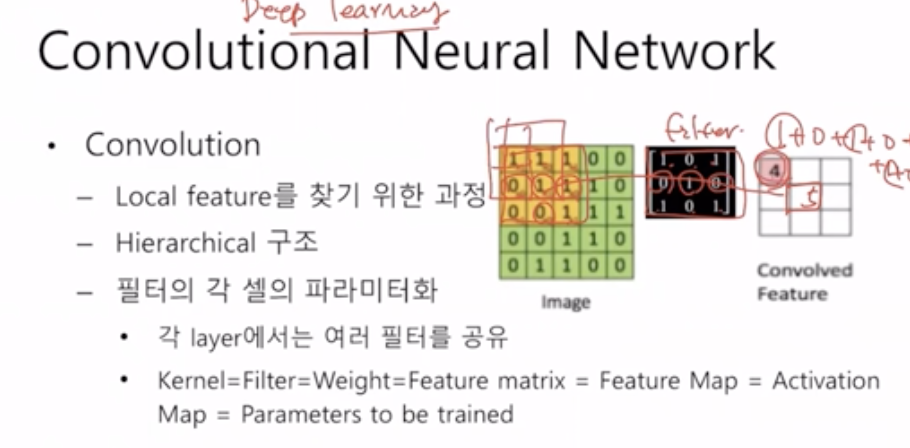 컨볼루μ μ μ£Όμ΄μ§ μλμ°λ₯Ό λ€μ§μ νμ μκ΄κ³Ό κ°μ μ°μ°μ νλ€. μνμ μΌλ‘ 보면 μκ΄κ³Ό λμΌν μ°μ°μ΄λ€. λ₯λ¬λ CNNμμμ 컨볼루μ μ κ°λ κ³Ό λμΌνλ€.