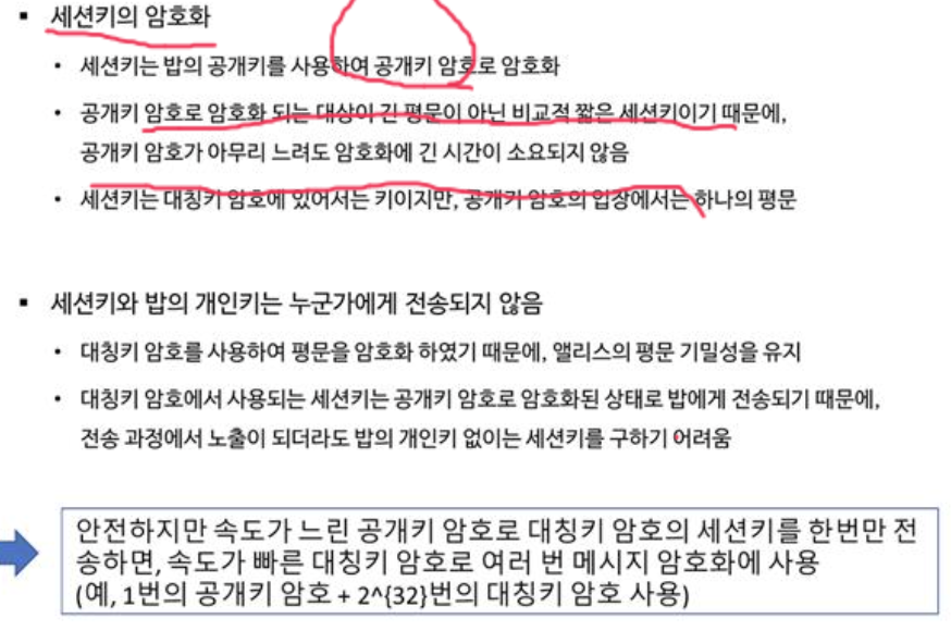 ์ธ์ ํค๋ฅผ ์ํธํ ํ๋ ์ฃผ์ฒด๋ ๊ณต๊ฐํค์ด๋ค. ์ธ์ ํค๋ AES๋ฅผ ์ฌ์ฉํ๋ ๊ฒฝ์ฐ 128, 192, 256 bit ํค ๊ธธ์ด๋ฅผ ์ฌ์ฉํ๋ฉฐ des๋ฅผ ์ฌ์ฉํ๋ ๊ฒฝ์ฐ 56๋นํธ ๋งํผ๋ง ์ํธํ ํ๋ฉด ๋๋ค. ๊ธธ์ด๊ฐ ์งง์ ๋ฐ์ดํฐ๋ฅผ ์ํธํ ํ๋ ๊ฒ์ด ๊ณต๊ฐํค ์ํธํ์ด๋ค. ๊ณต๊ฐํค ์ํธํ๋ ์๋๊ฐ ๋๋ฆฌ๋ค๋ ใทใ ใด์ ์ด ์์์ง๋ง ์ธ์ ํค ๊ธธ์ด ์ ๋๋ ๋น ๋ฅด๊ฒ ์ฒ๋ฆฌํ ์ ์๋ค.