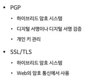 ์ด๋ฉ์ผ ์์คํ ์ ๊ตฌ์ถํ ๋ PGP ์์คํ ์ ์ฌ์ฉํ๋ฉฐ ์น๋ธ๋ผ์ฐ์ง์ ํ ๋ HTTPS๊ฐ ๋ง์ด ์ฌ์ฉ๋๋๋ฐ ์ด๋ ๋ณด์ ํต์ ์ ์ํด ๋ณด์ ํ๋กํ ์ฝ SSL/TLS ๊ฐ ์ฌ์ฉ๋๋ค. ๋ชจ๋ ํ์ด๋ธ๋ฆฌ๋ ์ํธ ์์คํ ์ ์ฌ์ฉํ๋ค.