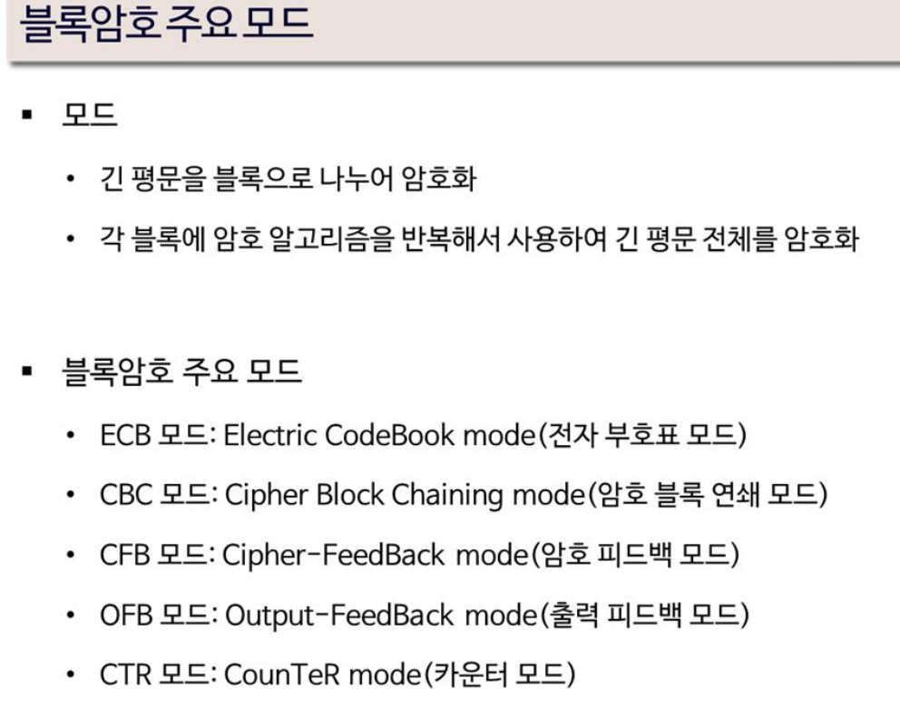 ํ์ด๋ธ๋ฆฌ๋ ์ํธ ์์คํ ์์ ๋ฉ์์ง๋ฅผ ์/๋ณตํธํ ํ ๋ ๋์นญํค ์ํธ๊ฐ ๋ง์ด ์ฌ์ฉ๋๋ค. ๋์นญ ํค ์ํธ ๋ฐฉ์์ผ๋ก๋ ๋ธ๋ก ์ํธ์ ์คํธ๋ฆผ ์ํธ๊ฐ ์กด์ฌํ๋ค. ํ๋์๋ ๋ธ๋ก ์ํธ๊ฐ ๋ง์ด ์ฌ์ฉ๋๊ณ ์์ผ๋ฉฐ ๊ธด ๋นํธ์ ๋ฉ์์ง๋ฅผ ์ํธํ ์ฒ๋ฆฌ ํ๊ธฐ ์ํด์ ๋ธ๋ก์ํธ ๋ชจ๋ ๋ฐฉ์์ด ํ์ํ๋ค.