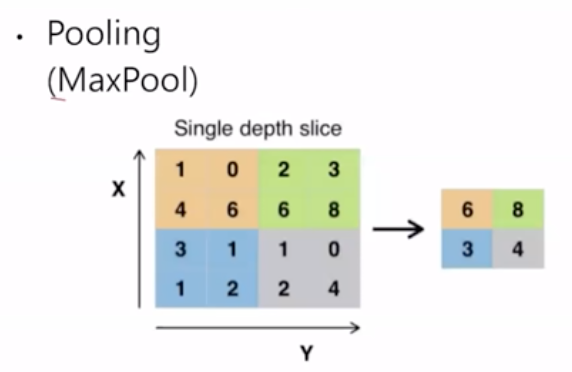 μ£Όμ΄μ§ μμμ λν΄μ 컨볼루μ μ μνν νμλ poolingμ΄λΌλ κ³Όμ μ κ±°μΉλ€. μ£Όμ΄μ§ μμμμ νΉμ ν κ°μ λ½μ μ°¨μμ μ€μ΄κ² λλ€.