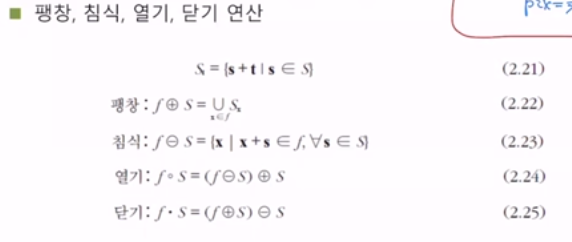 - μ£Όμ΄μ§ ν½μ κ°μ΄ 1μ΄λΌλ©΄ μ£Όλ³μ κ°μ λͺ¨λ 1λ‘ λ°κΏμ€λ€ (ν½μ°½, dilation)