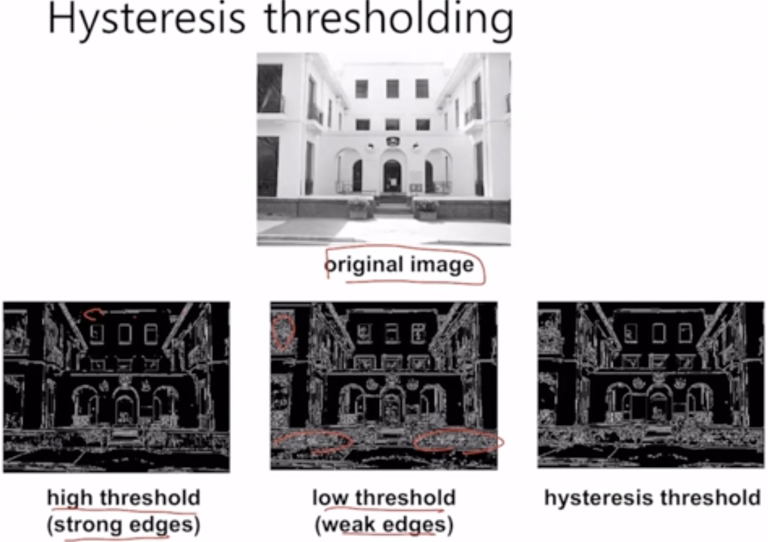 - Hysteresis thresholding์ ์์์ ๊ดํ์ฌ ์ดํด๋ณด์!