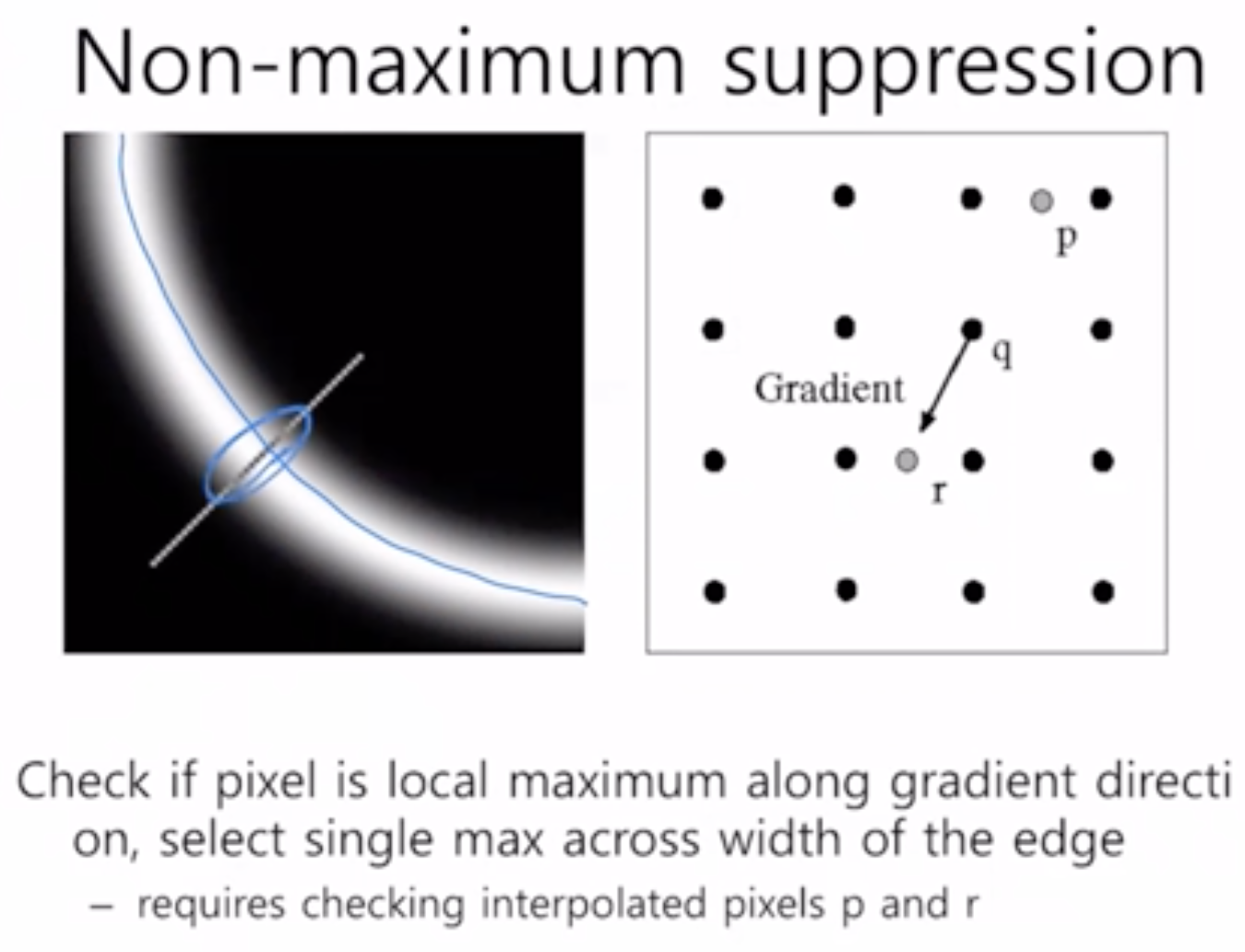 - ๋ง์ฝ ์ฃ์ง๊ฐ ๊ตต์ ๋ถ๋ถ์ด๋ผ๋ฉด non-maximum suppression์ ์ฌ์ฉํ์ฌ ํ์ค๋ก ์ค์ฌ์ค๋ค.