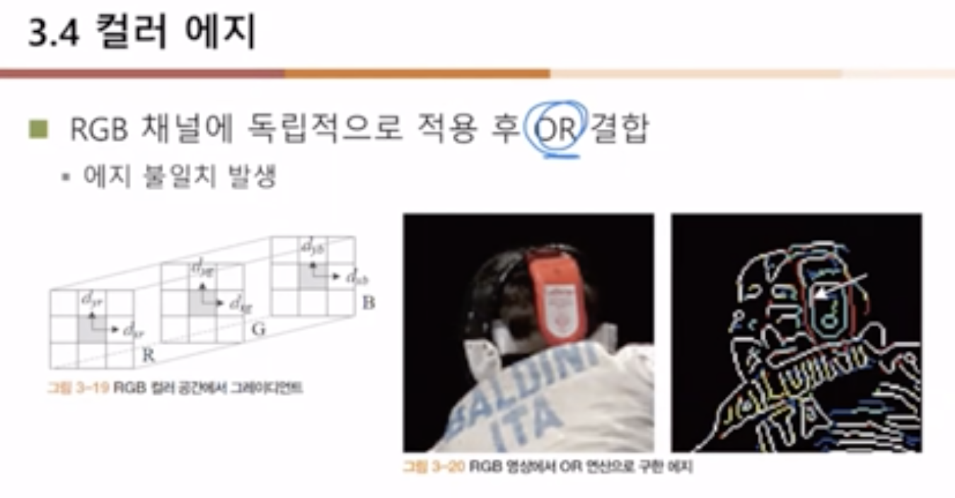 - ์ปฌ๋ฌ ์ฃ์ง๋ R, G, B ์ฑ๋์ ๊ฐ ์ฃ์ง๋ฅผ ๊ฒ์ถํ ํ์ OR ์ฐ์ฐ์ ํตํด ํฉ์ณ์ค๋ค.