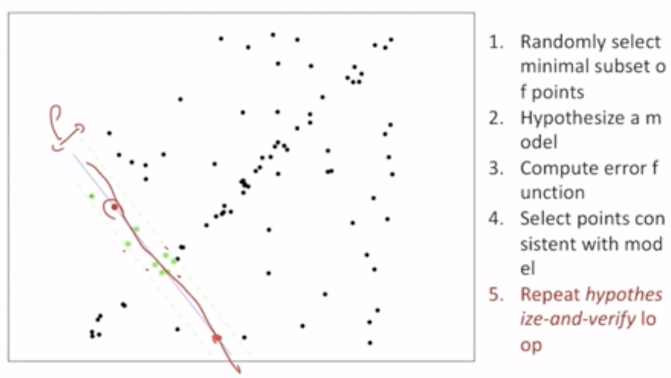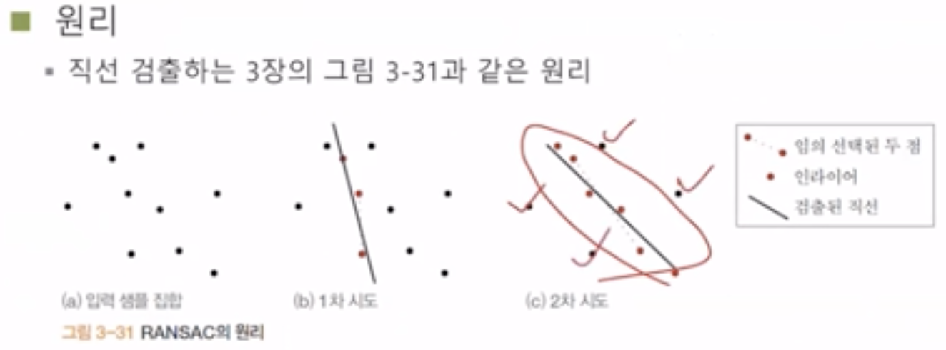- ์ด ๋ฌธ์ ์ ๊ดํ์ฌ ์๋ฃจ์ ์ RANSAC ์๊ณ ๋ฆฌ์ฆ์ด๋ค.