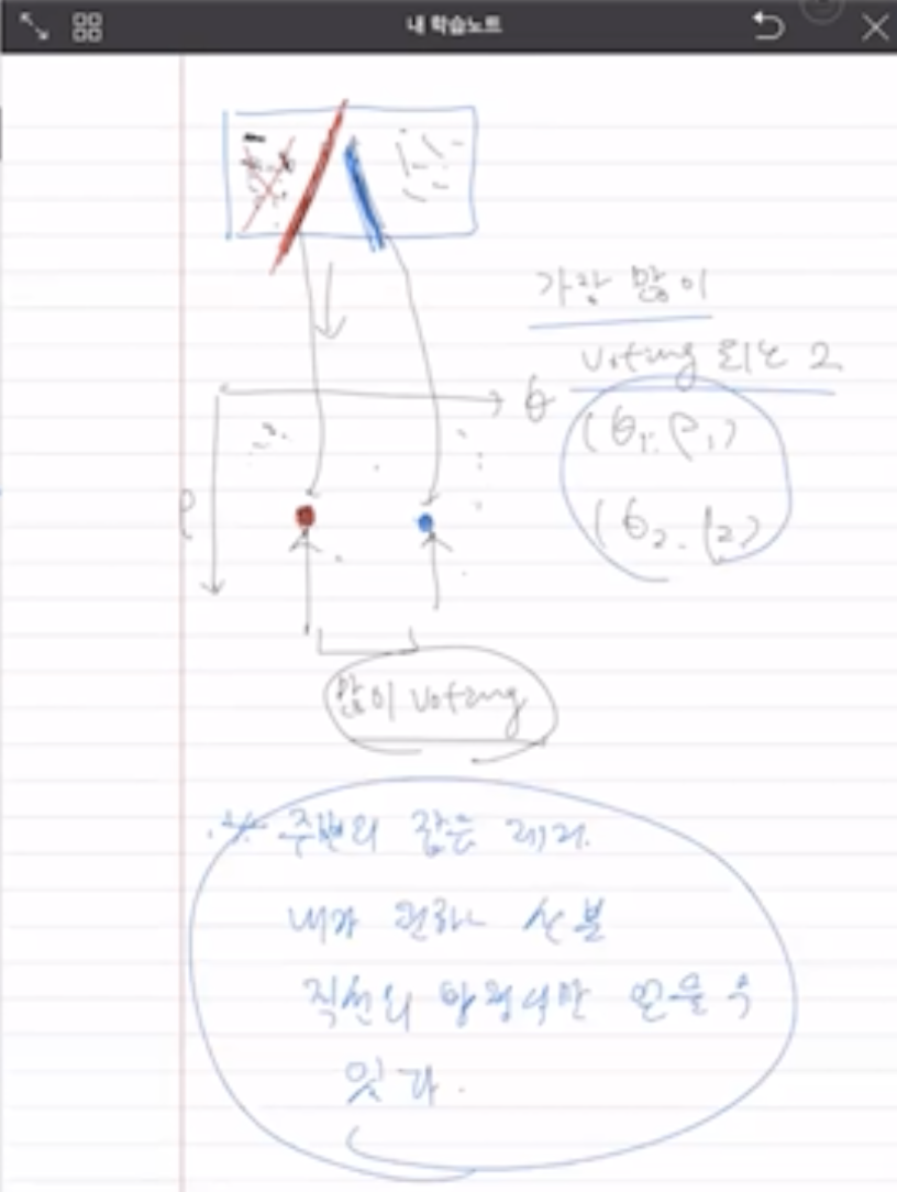 - x-y์ขํ๊ฐ๋ค์ ๋ชจ๋ p, ์ธํ๋ก ๋ณํ์์ผ์ ๊ฐ์ฅ ๋ง์ด ์ ํ(Voting)๋๋ ์ p์ ์ธํ๋ฅผ ์ ํํ๋ค.