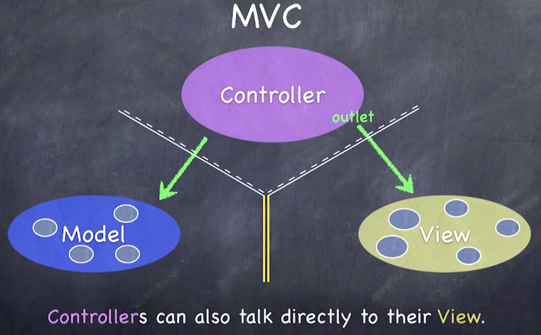 - 위 그림에서 초록색 큰 화살표로 표현된 개념이 InterfaceBuilder 에서 설정해준 Outlet 이다.