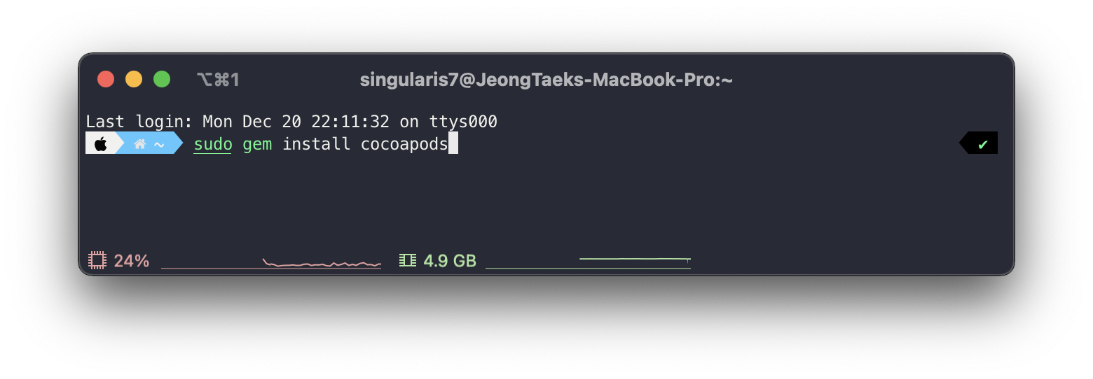 - 코코아팟은 루비로 제작되었으며 맥OS에 기본적으로 내장되어있는 루비를 사용하여 설치할 수 있습니다.